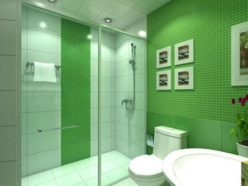 綠色的空間色彩搭配白色的衛(wèi)浴設(shè)施,清新淡雅。風(fēng)景畫的裝飾,花卉的點綴,給衛(wèi)生間蒙上了春的意蘊。