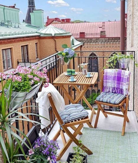 各種花卉爭相斗艷,復(fù)古的實木桌椅帶你回歸自然,感受自然;清爽的色調(diào)讓生活變得簡單真實,隨性自在,悠閑自得。這種小清新的陽臺,不管是欣賞風(fēng)景還是周末打發(fā)閑暇時間,都是不錯的選擇地點。