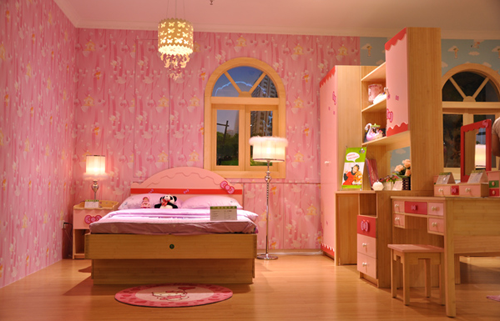 看著這款公主房的設(shè)計(jì),是不是感覺(jué)很溫馨呢?小小的木質(zhì)馬蹄窗設(shè)計(jì),木質(zhì)的床、木質(zhì)的家具及木質(zhì)桌椅,質(zhì)樸感濃郁。即使是使用花色較繁雜的墻紙鋪貼墻面,也不會(huì)給人雜亂無(wú)章,頭腦眩暈的感覺(jué)。粉色的床頭、蝴蝶結(jié)的點(diǎn)綴設(shè)計(jì)增加了可愛(ài)感;造型精致獨(dú)特的小吊燈,散發(fā)著暖黃色的燈光,映在屋內(nèi),倍感舒適。