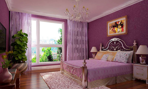 紫色是帶有神秘感且貴重的顏色,象征著尊貴。選用紫色調(diào)大面積充斥房間,無(wú)需刻意裝裱,那抹高貴典雅的氣息便油然而生。這款公主房的設(shè)計(jì)就是選用紫色作為主色調(diào),無(wú)論是墻面的顏色還是床品窗簾的色調(diào),都采用高貴的紫色,造型獨(dú)特鐵藝床,做工精致的床頭柜,現(xiàn)代簡(jiǎn)約感的床頭燈,金邊相框的油畫(huà),造型別致的水晶吊燈,無(wú)一不透著高貴優(yōu)雅的氣質(zhì),公主范十足。
